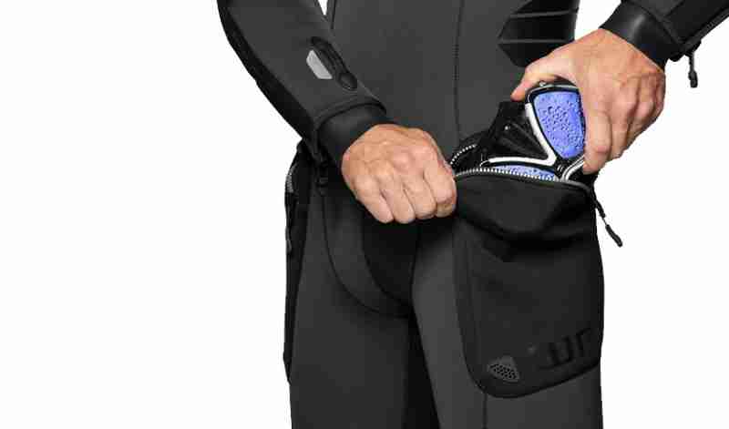 Anti-slip surfaces over the shoulders and waist. Two streamlined, easy to use, flexible pockets with enough space to hold a spare mask, SMB with a spool, deco tables, and so on. All zippers come equipped with zipper pullers to ease opening and closing with or without gloves.